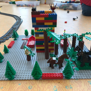Le deuxième jour était consacré au chemin de fer. Les ingénieurs en herbe ont relié Paris à La Baule-Escoublac avec sa petite gare entourée de pins. Chacun a imaginé son wagon puis ils les ont tous reliés entre eux avec des aimants puis à une locomotive motorisée. Certains se sont inspirés d'un article de Ouest France du matin même qui présentait une invention des années 1920, l'aérowagon, un wagon de train équipé d'un moteur et d'une hélice à traction. D'autres ont préféré imaginer des wagons banque (sur trois étages avec le shériff, son associé et le voleur en pleine tentative de casse...) et c'est très bien aussi ! C'était une initiation à l'inertie, la vitesse et l'équilibre.